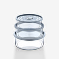 Elevate your organisational game with our 3-in-1 Round Storage Boxes Set, offering three sizes in one package: 0.75 litres, 1 litre, and 1.5 litres. Crafted from durable materials, these boxes are ideal for storing kitchen essentials, stationery, crafts, and more. Their stackable design optimises space in your pantry, kitchen cupboards, or office. Keep your belongings tidy and within reach with this adaptable storage solution.